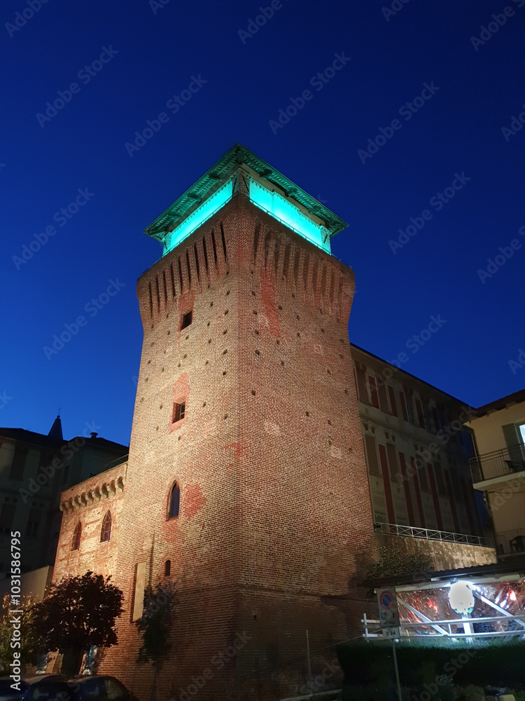 Tower of Settimo at night in Settimo Torinese
