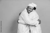 Happy Indian Muslim Men Hug each other celebrating Eid