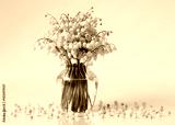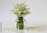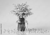 Lily of the valley flowers in a vase. Romantic floral still life with bouquet of spring flowers.