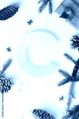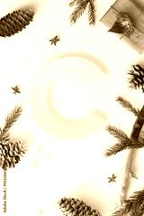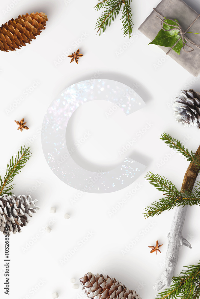 lettera C alfabeto con le pigne e rami di pino , su sfondo bianco