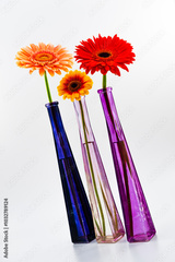 Kolorowe gerbery w smukłych wazonach