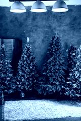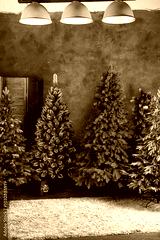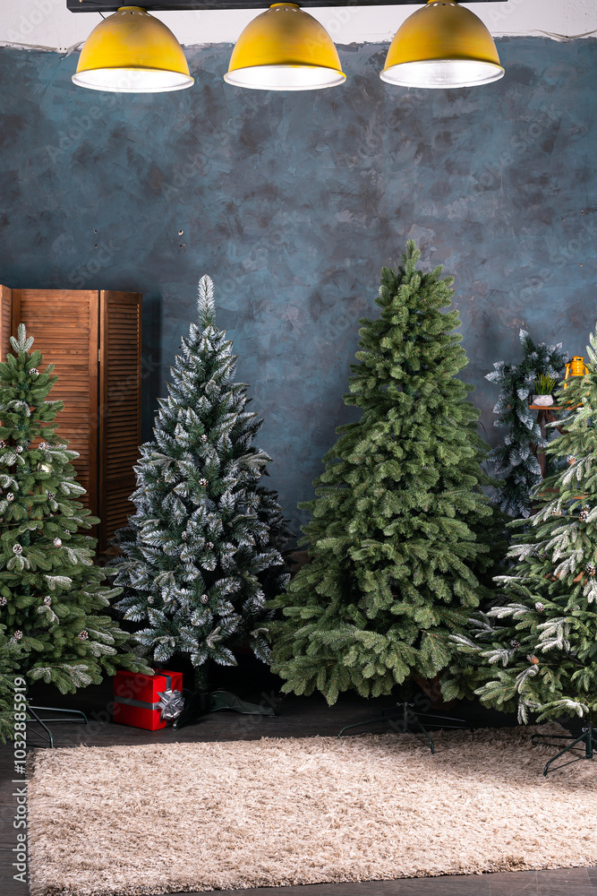 artificial Christmas tree ready to be decorated for the New Year celebration