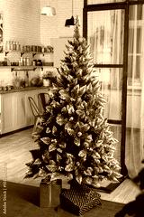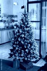 artificial Christmas tree ready to be decorated for the New Year celebration
