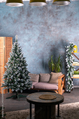 cozy interior with a Christmas tree without people