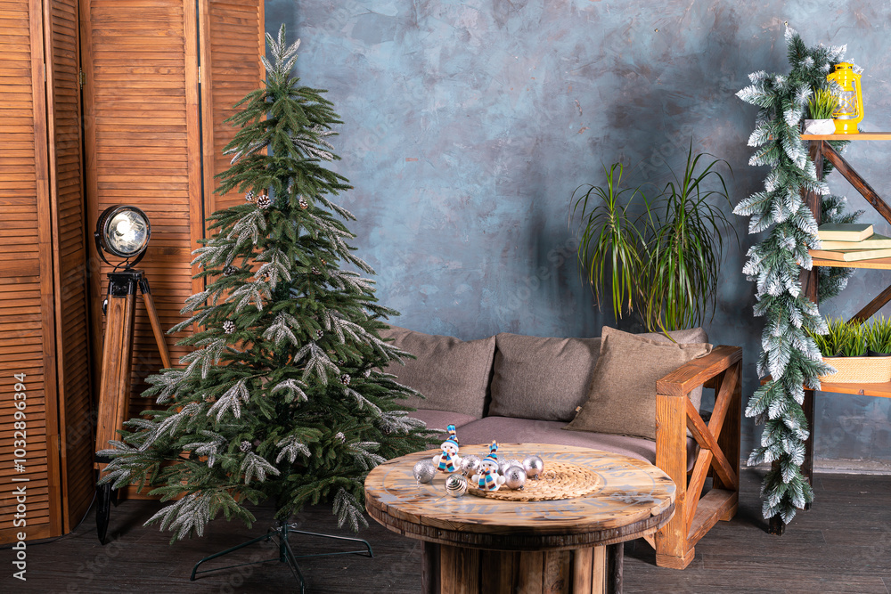 cozy interior with a Christmas tree without people