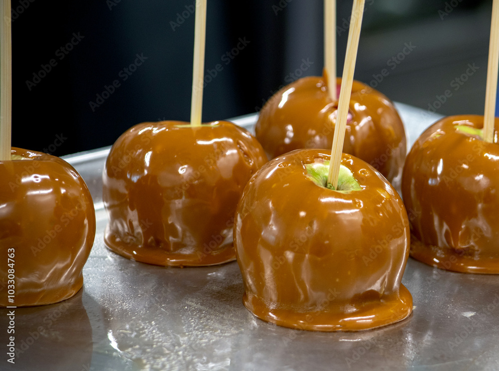 sweet caramel apples, freshly dipped, ready for Halloween treats