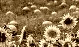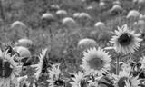 field of pumpkins with sunflowers on a fall day in Michigan USA