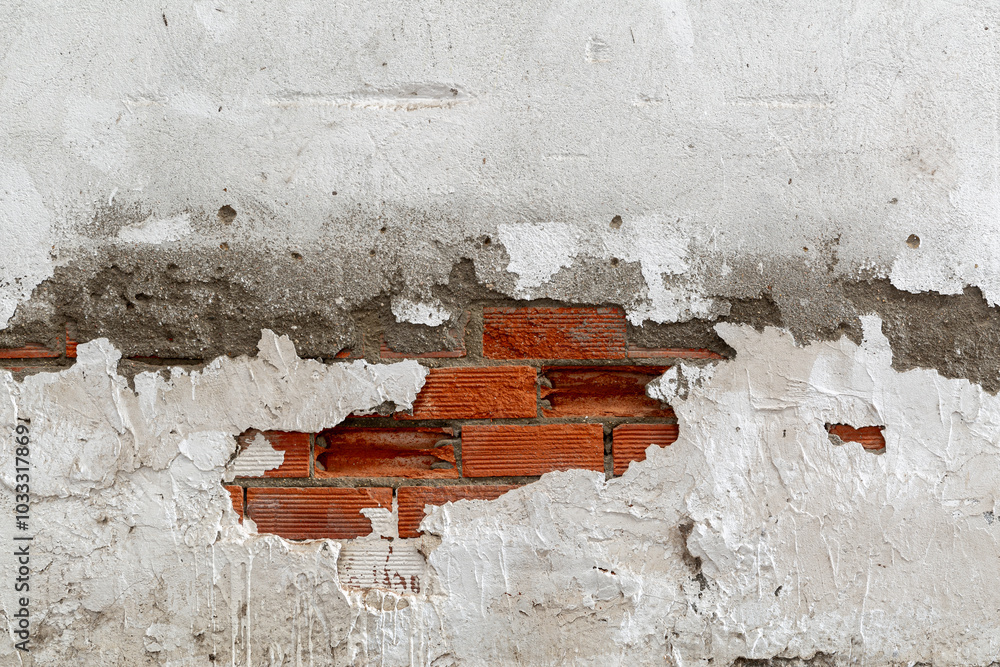 Shapes and textures of a cement and brick wall.