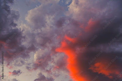 dramatic and colorful sunset clouds in summer time