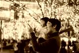 イルムネーションを見るお父さんと子ども