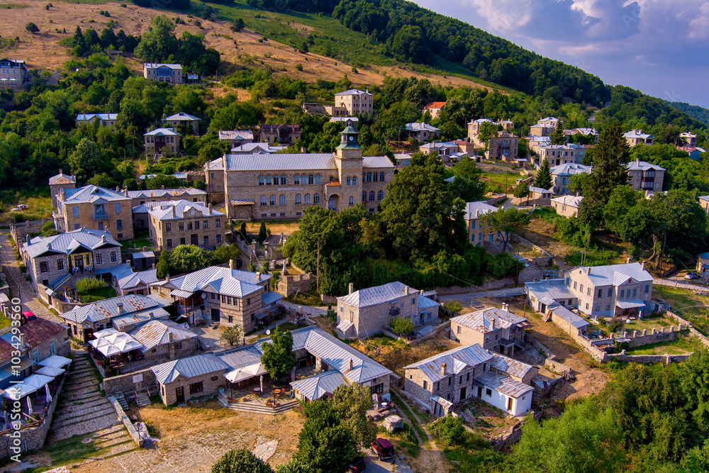 An aerial view of Nymfaio, a picturesque mountain village in Greece