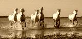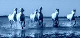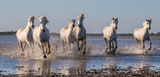 White Camargue Horses run in the swamps nature reserve. Parc Regional de Camargue. France. Provence. An excellent illustration