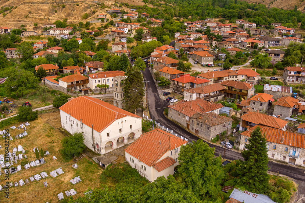 Aerial view of Agios Germanos is a village in the Prespes , Greece