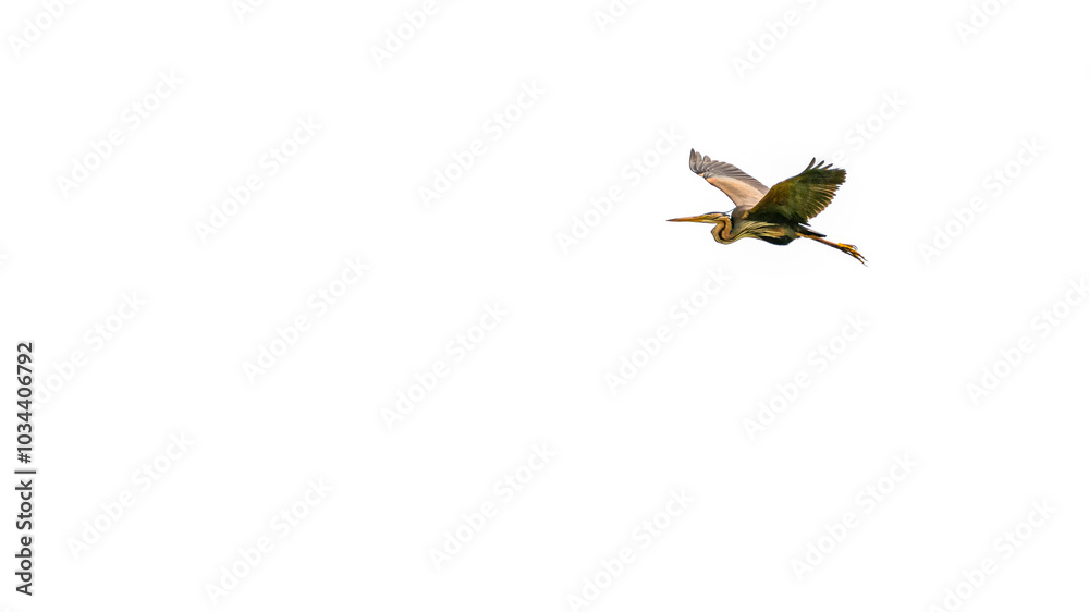 Purple heron in natural habitat. Ardea purpurea.