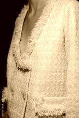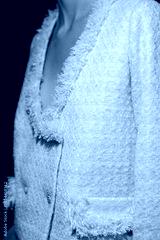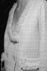Close up figure of model woman wearing classic white pink plaid blazer. Fashion stylish shot. Casual lifestyle cloth