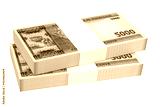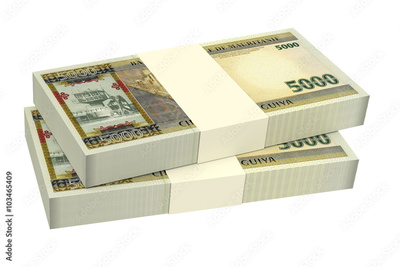 Mauritanian ouguiya bills isolated on white background. Computer generated 3D photo rendering.
