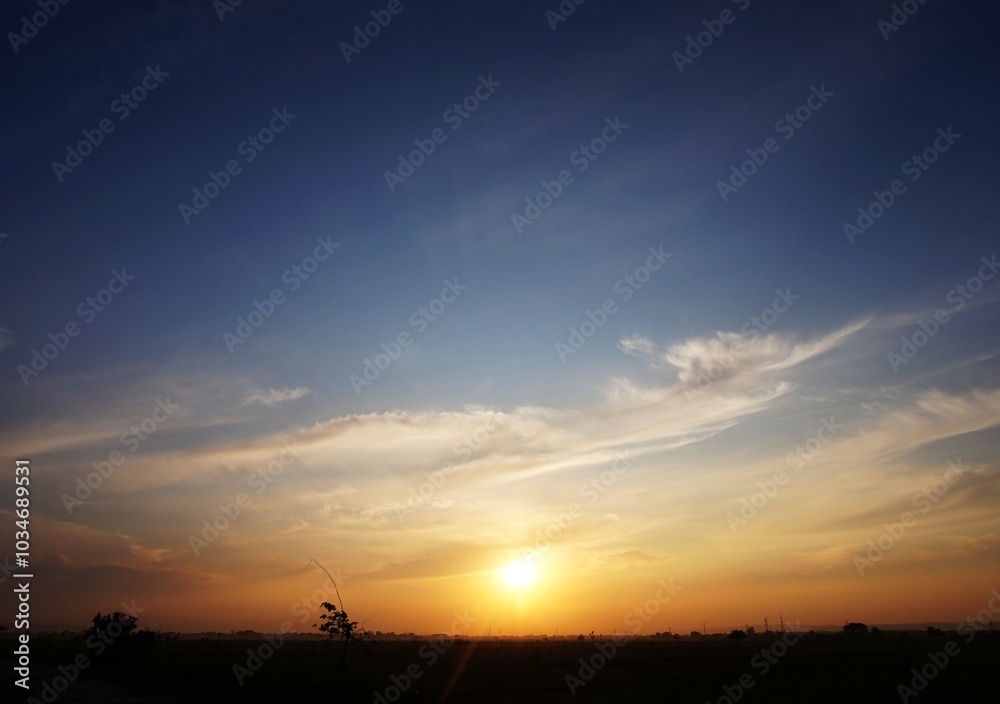 photo of the sky in a bright afternoon, and the sun looks yellow about to set and beautiful white clouds