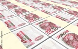 Algerian dinar bills stacks background. Computer generated 3D photo rendering.