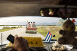Happy woman on a convertible car in Cuba, enjoy Cuba country