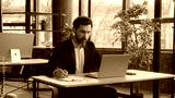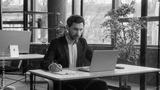 Focused adult businessman work on project in office using laptop writing notes caucasian man business leader professional employee analyze information on internet write data planning with computer app