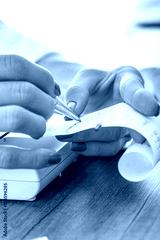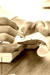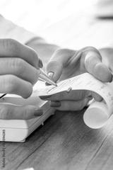Female hands holding a printout and circling data