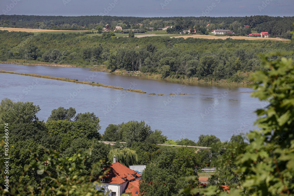 Widok na rzekę Wisłę i jej brzegi latem, Kazimierz Dolny, Polska