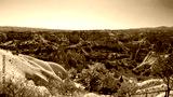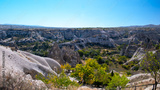 Fairy chimneys and leaves yellowed with the effect of autumn in Cappadocia