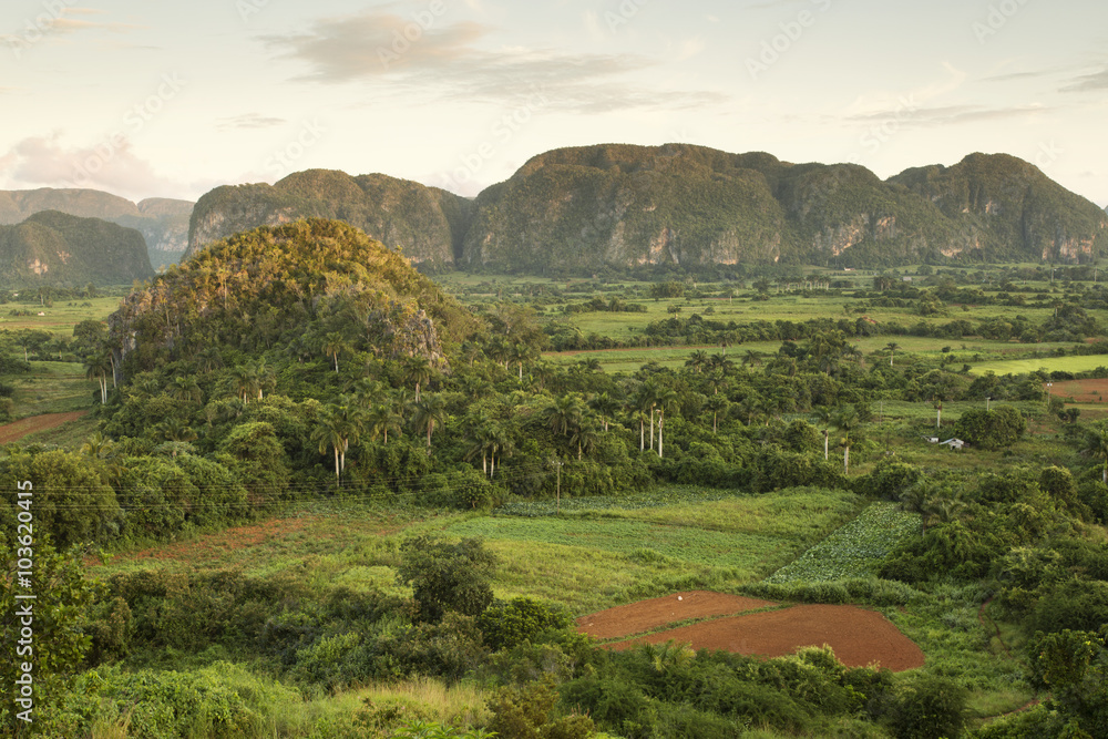 Panoramic view over landscape with mogotes in Vinales Valley ,Cu