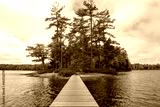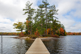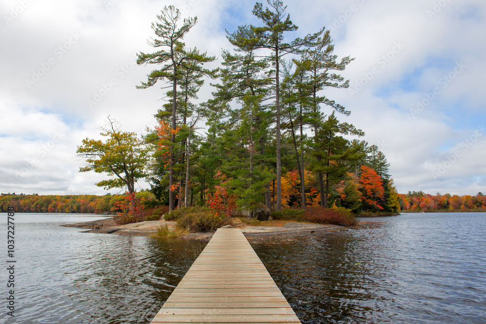 Wooden Bridge to Island on Hardy Lake in Muskoka, Canada.