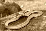 A beautiful Western Natal Green Snake (Philothamnus occidentalis) on a large rock in the wild