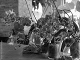 CLOSE UP, DOF: Beautiful pink orchid flower blossoms in the warm and cozy sitting room. Detailed closeup shot of a blossoming purple orchid with a blurry background of the neatly decorated living room