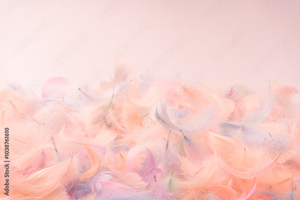 Colorful feather background, top view.
