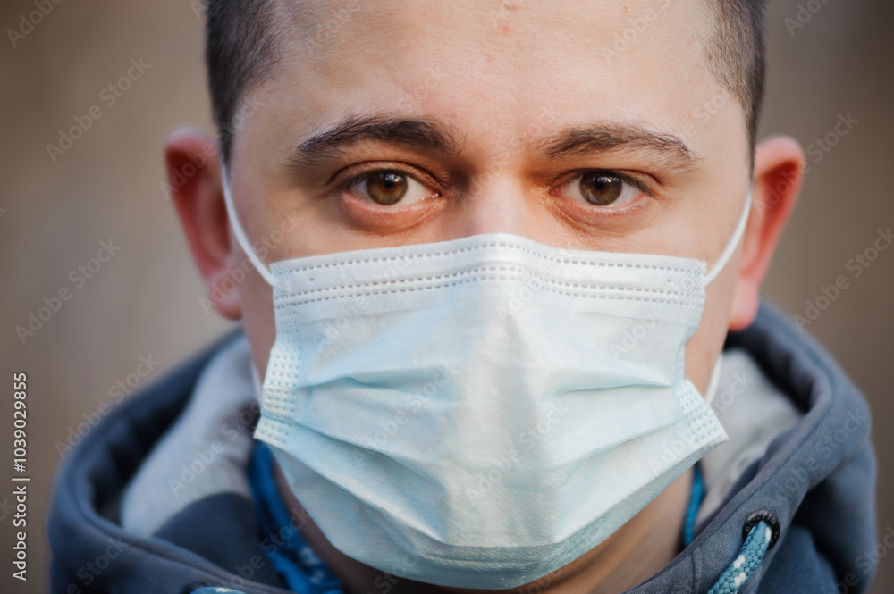Portrait of a Young Man Wearing a Face Mask in Natural Light