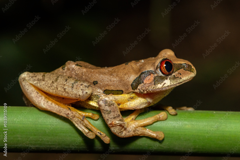 A beautiful Natal Forest Tree Frog (Leptopelis natalensis) near a pond in the wild