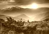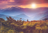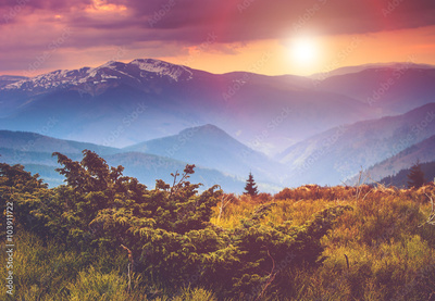 Colorful sunset in the mountains landscape.Dramatic overcast sky.