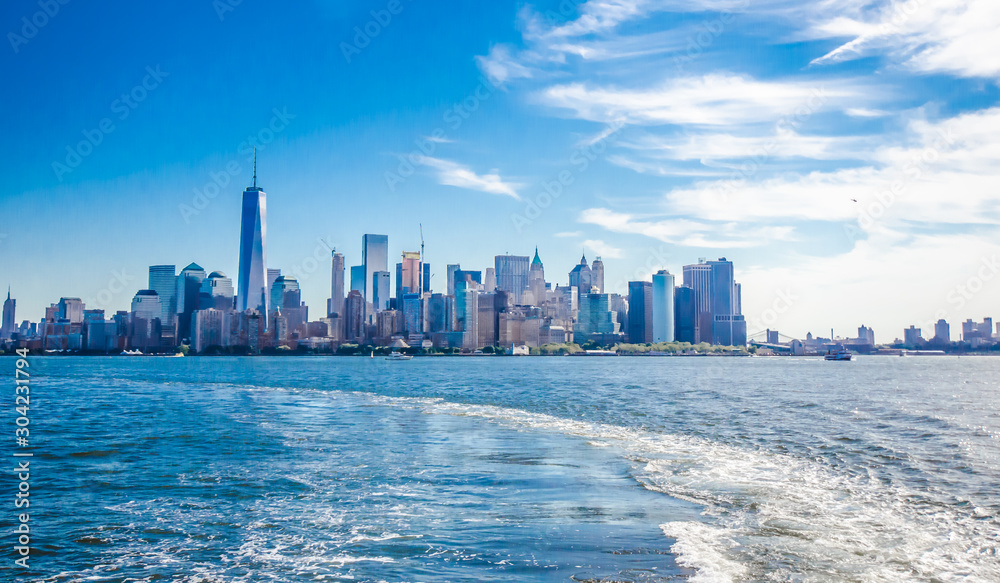 New York subway station interior, Manhattan text sign. Underground metropolitan. United States metro transport navigation. Information signage public passenger railway. Downtown and Queens direction.