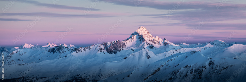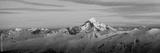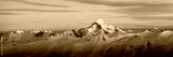 Panoramic view of Queyras mountain range at sunrise; mountains covered by snow