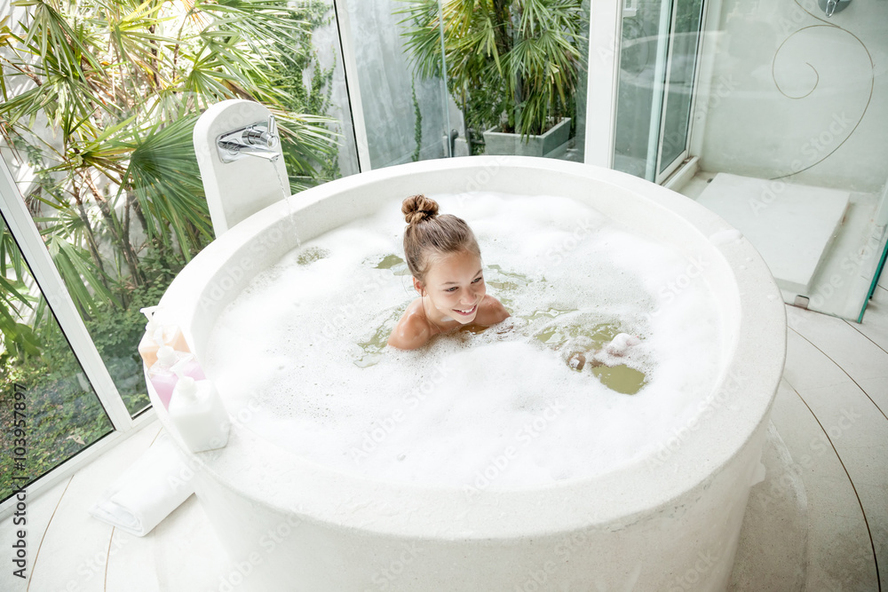 Kid girl washing in bath