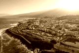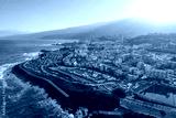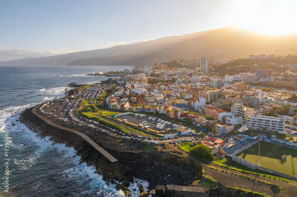 Aerial view of Puerto de la Cruz cityscape at sunrise, Tenerife, Spain