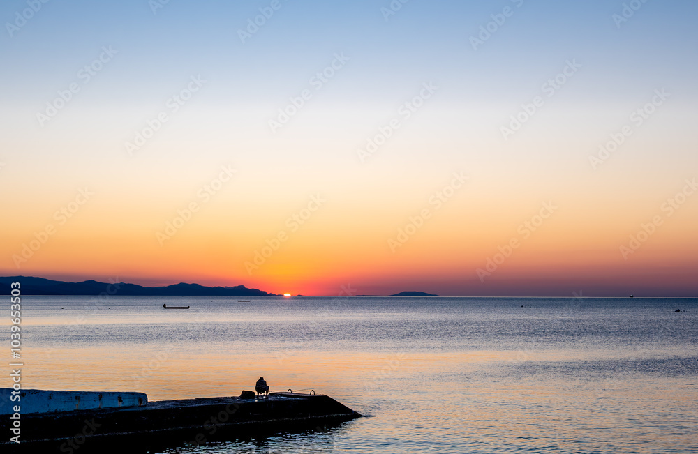 Sunrise over the sea in the early morning.