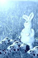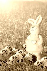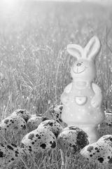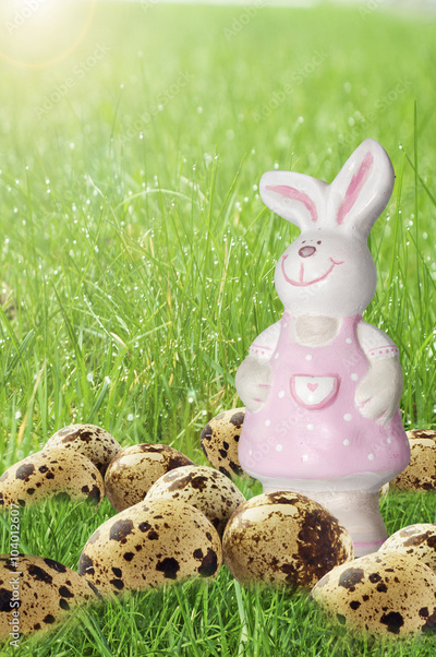 Easter bunny and Easter eggs on green grass