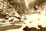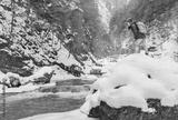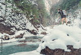 Hiker woman near the winter river