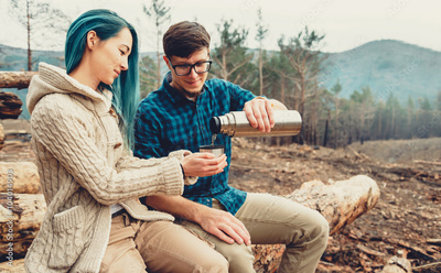 Couple drinking tea outdoor