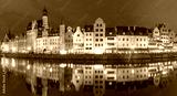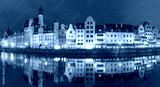 Panorama of Old Town of Gdansk, Dlugie Pobrzeze and Motlawa River at night, Poland