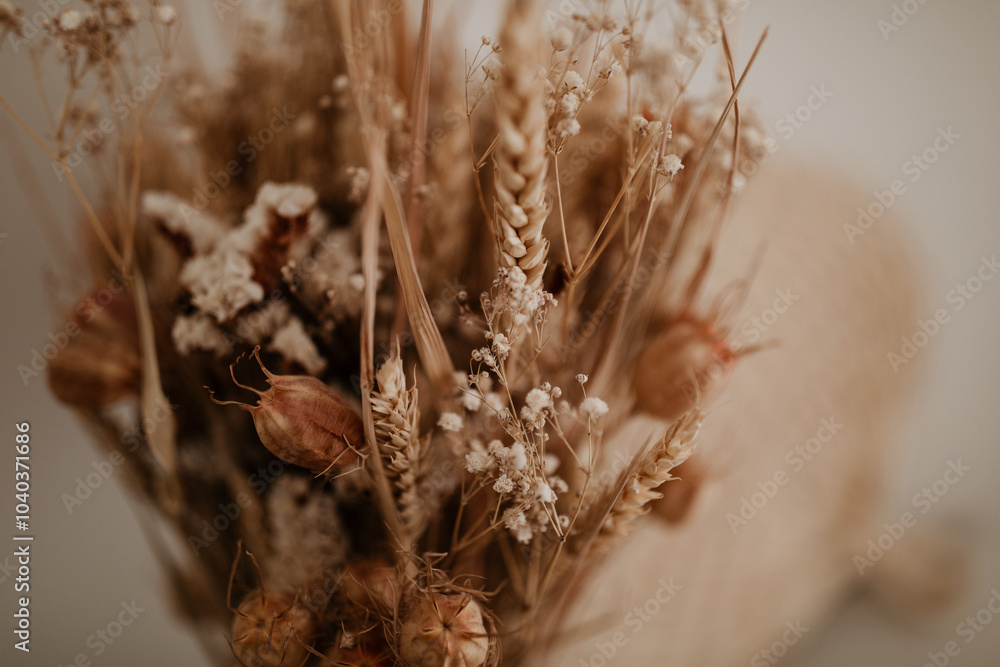 Close-Up of Dried Floral Arrangement in Warm Neutral Tones