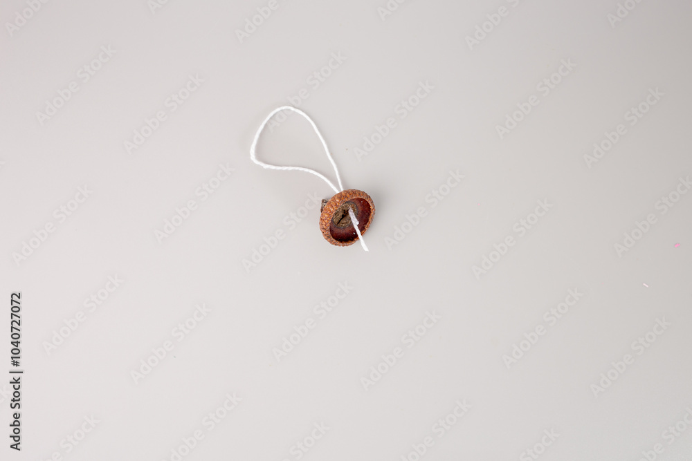 raw acorn cap with string loop, creative nature craft, autumn decor, handmade project