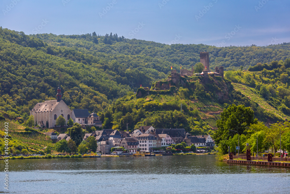 View of the village of Beilstein and the ruins of the medieval Metternich Castle, Germany.