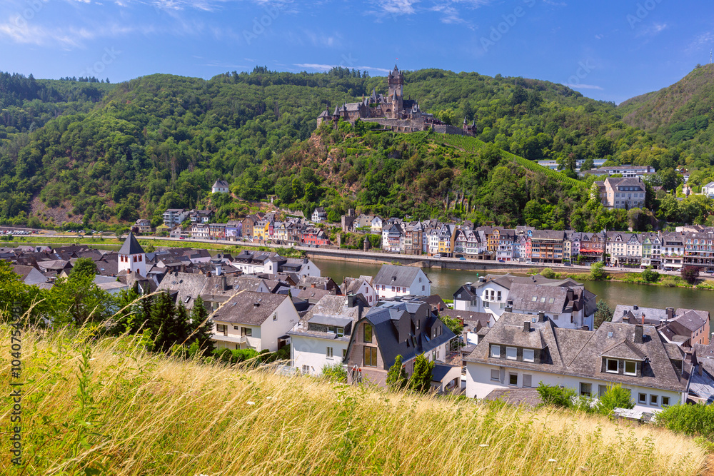 Picturesque view of Cochem and Reichsburg castle on the Mosel river, Germany