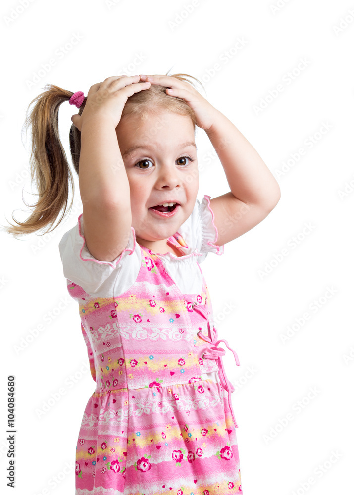 Little girl covering his head with hands isolated