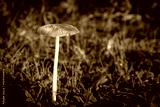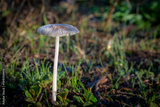 Small mushroom Parasola auricoma or Coprinus auricomus in autumn.